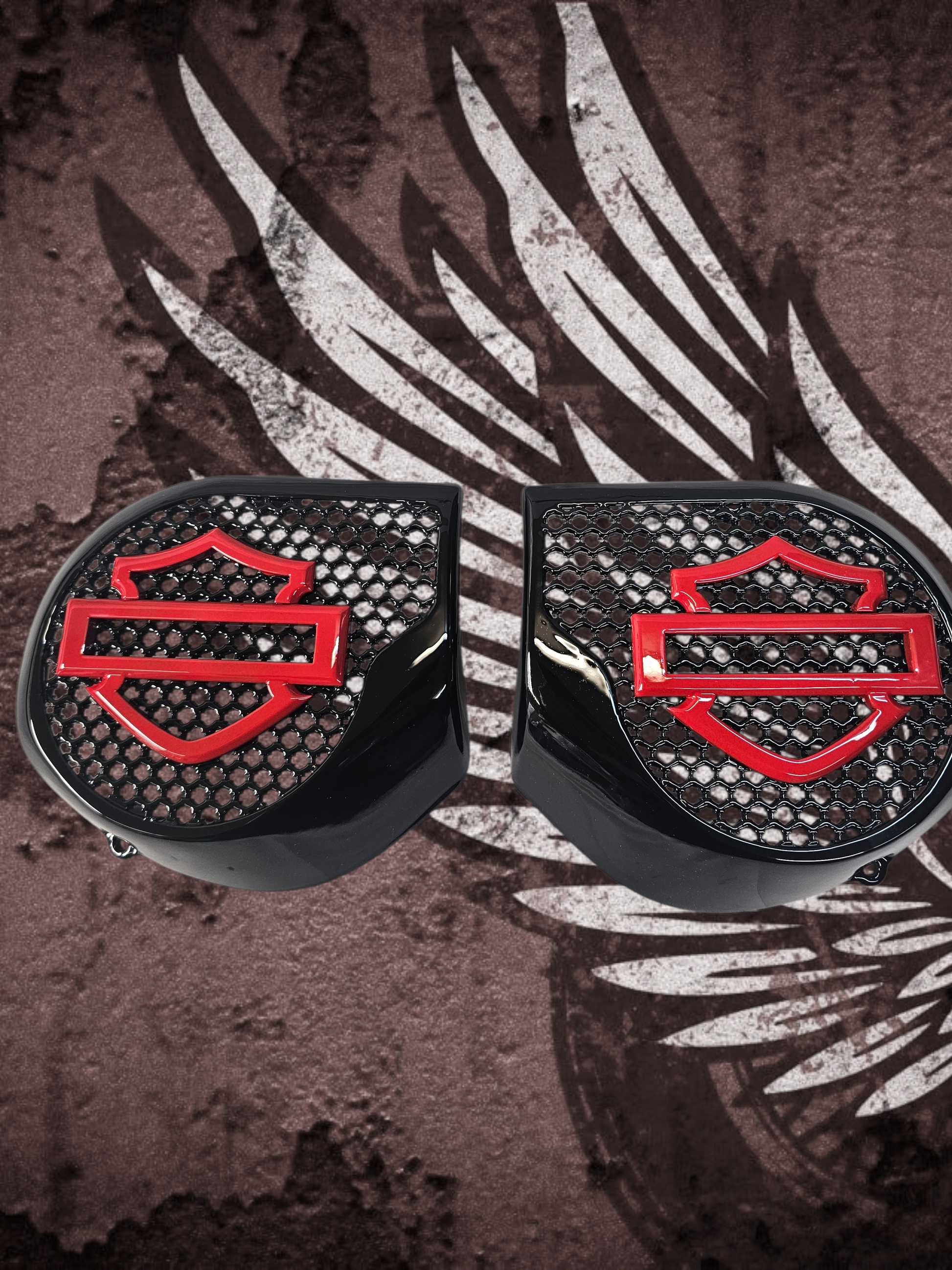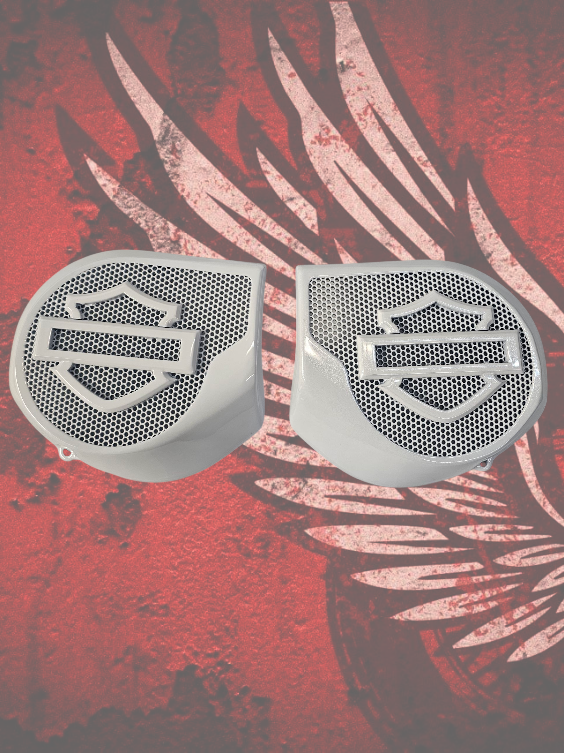 Introducing our revolutionary 3D speaker covers that seamlessly accommodate speakers of all sizes. Each cover is meticulously crafted to order, tailored exclusively for you, with a production timeline of approximately three weeks. Personalize your experience with a spectrum of color combinations, and we cater to any bike's year or make. Order verification ensures precision before production.