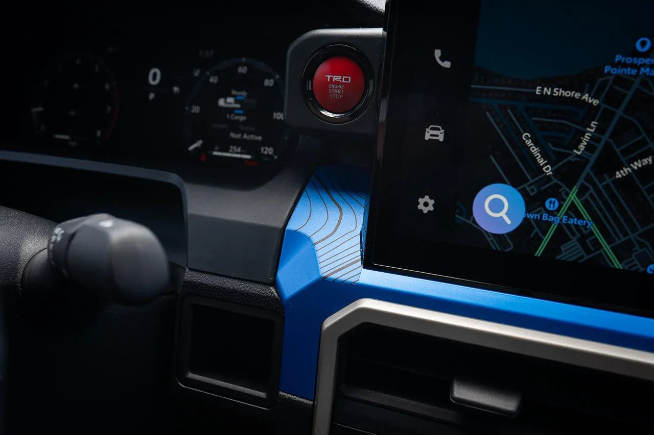 These vinyls really do add some style to the interior of your 2024 Toyota Tacoma. The contour lines are printed on clear vinyl and then topped with a layer of matte laminate to protect it all.