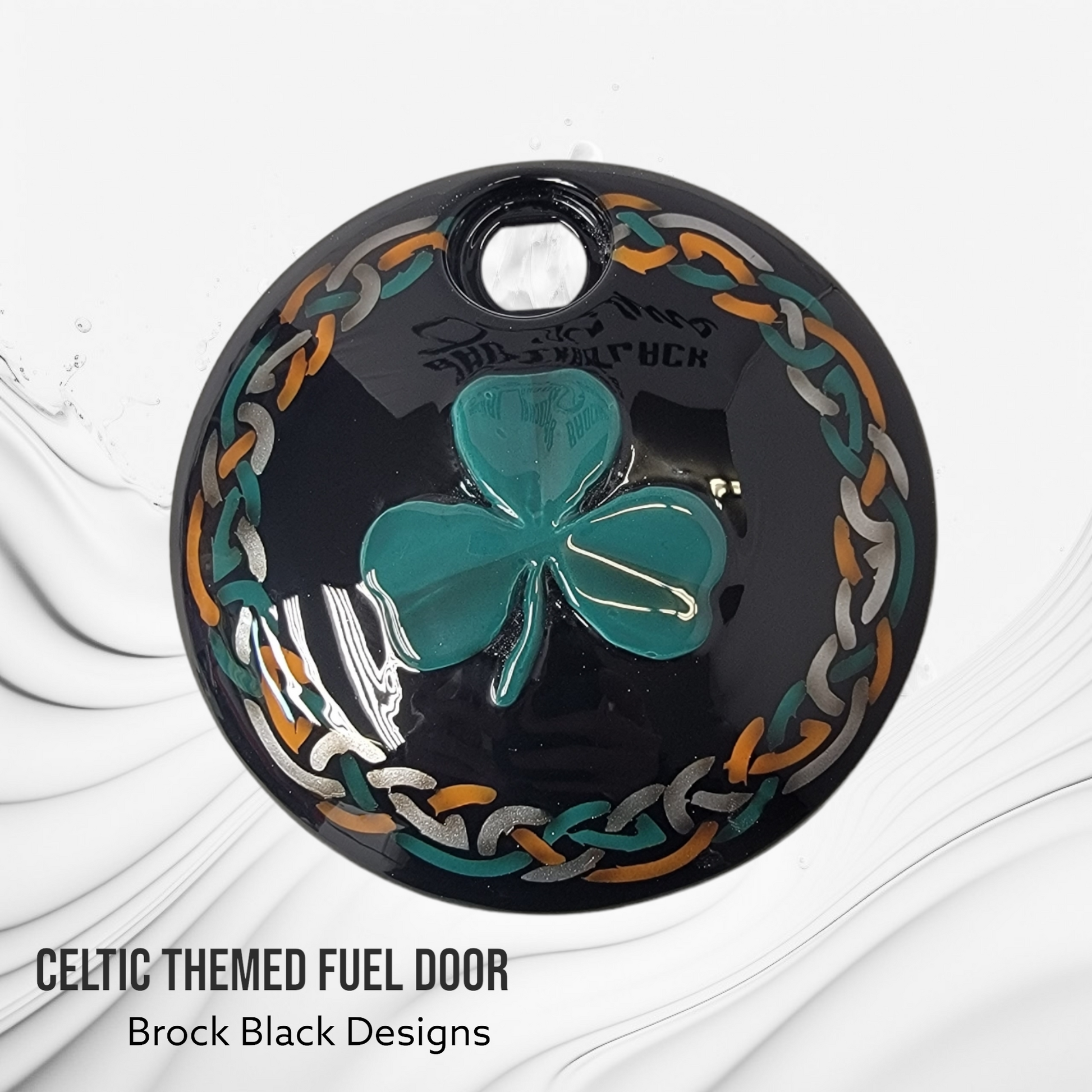 3D clover with Celtic design Harley fuel door