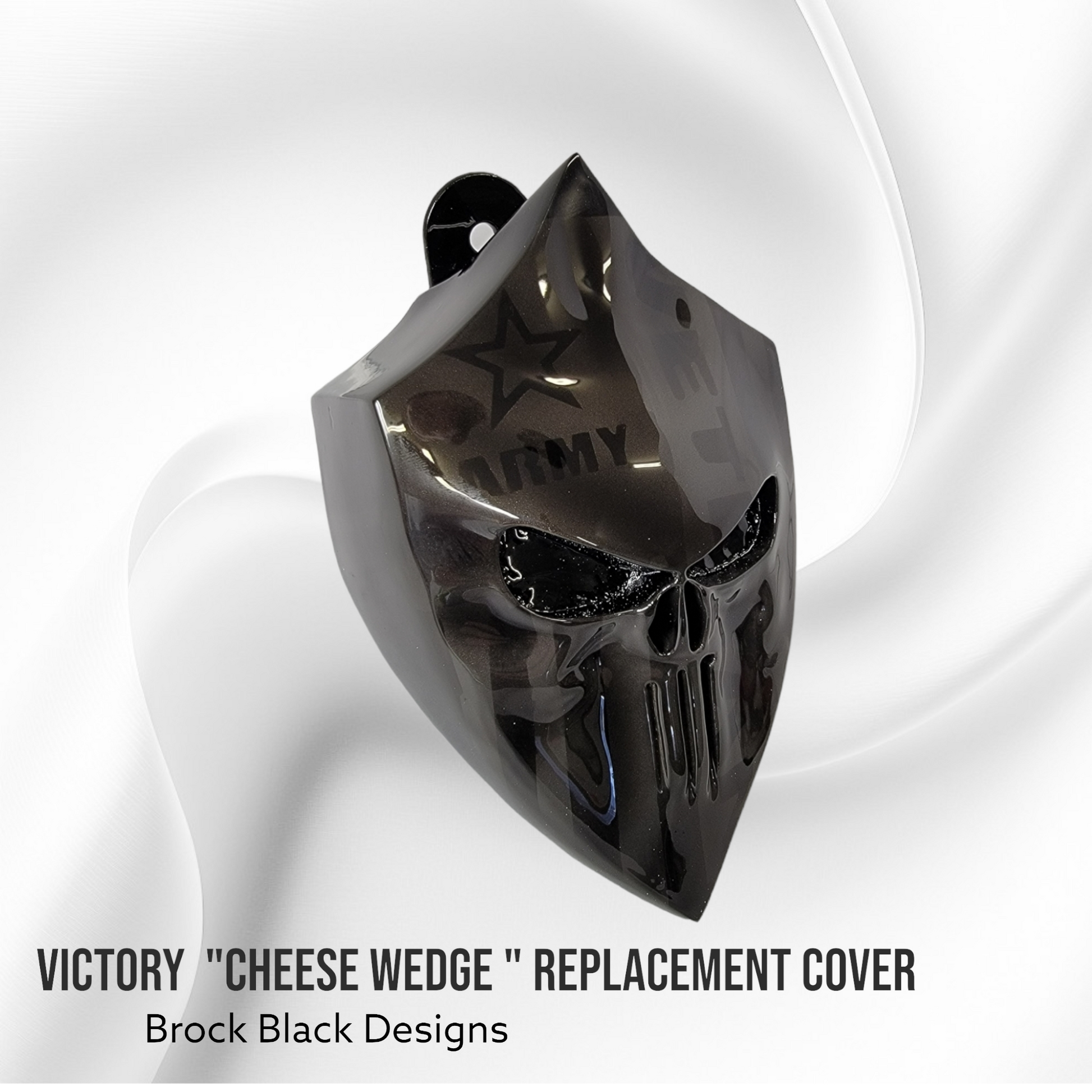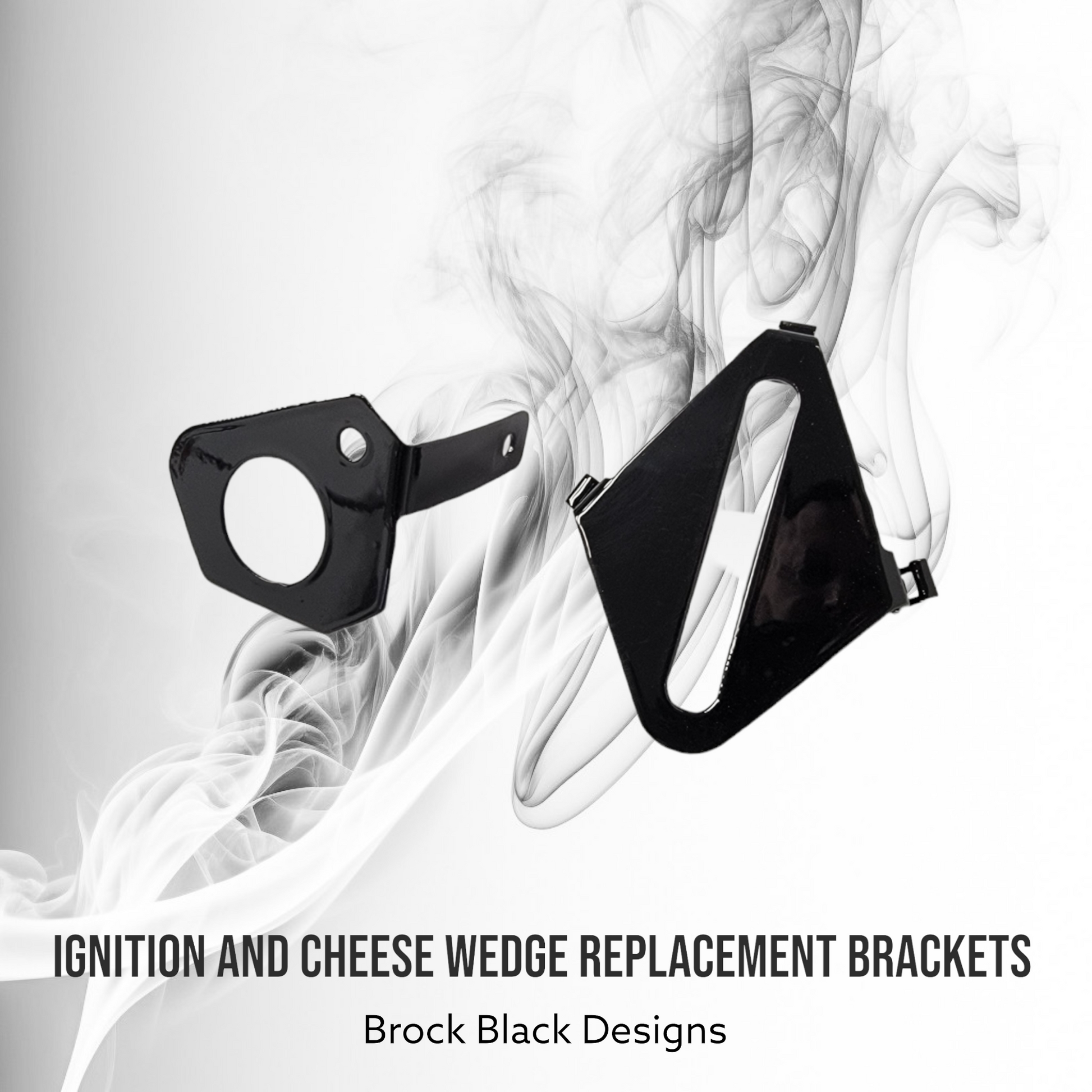 Brock Black Designs covers are a direct replacement for the factory cheese wedge. Can be used on left or right side. Left side comes with new bracket and ignition relocation bracket that bolts directly up to our covers. Right side comes with new bracket to replace cheese wedge. These are individually built and designed for the customer. We can do any color combination or theme. Normally take 3 to 4 weeks to build. We will verify the order when placed.ย