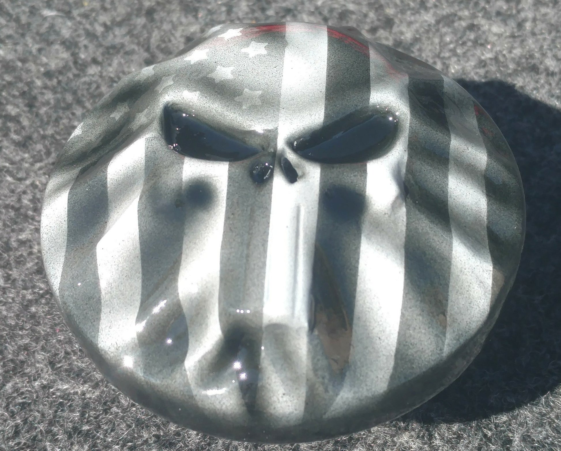 3D skull and flag on Harley touring fuel cap