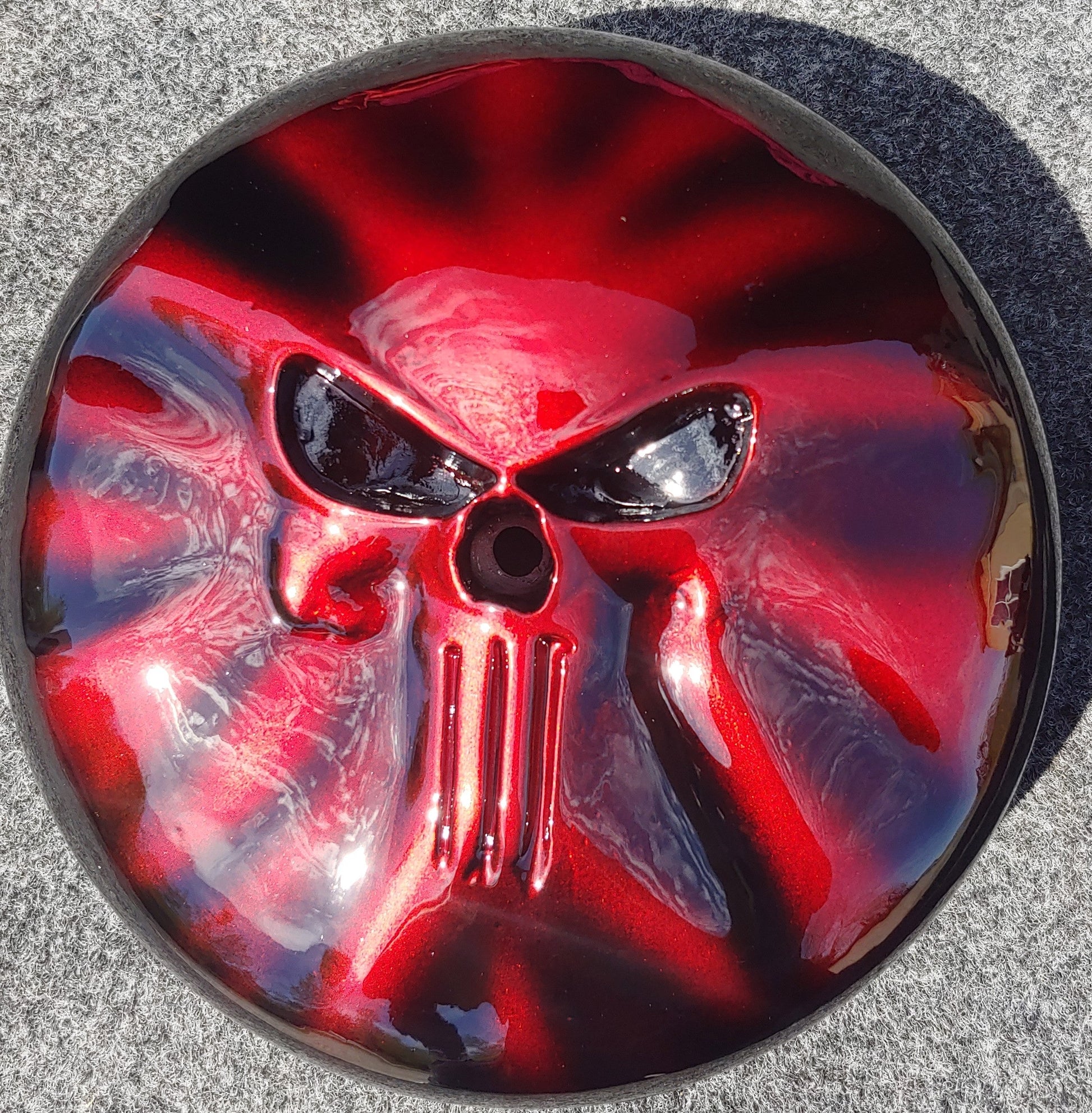 Custom-built 3D Punisher stretching through Harley-Davidson 107 air cleaner.Can do any design, color combination or style of bike. These are individually built and designed for the customer. These take about 3 weeks to build. We will verify information after the order is placed. Contact us if you have any questions or special requests.