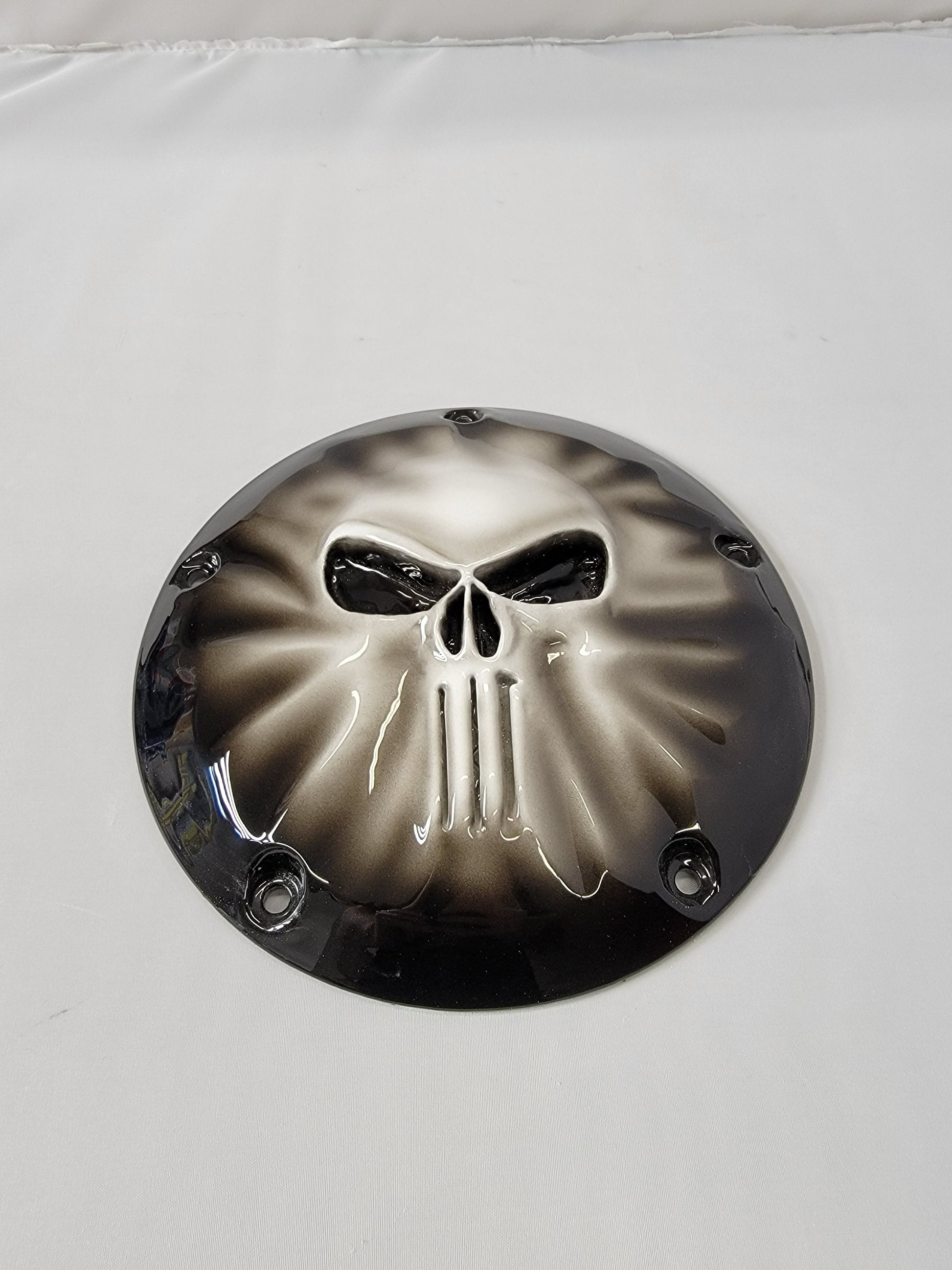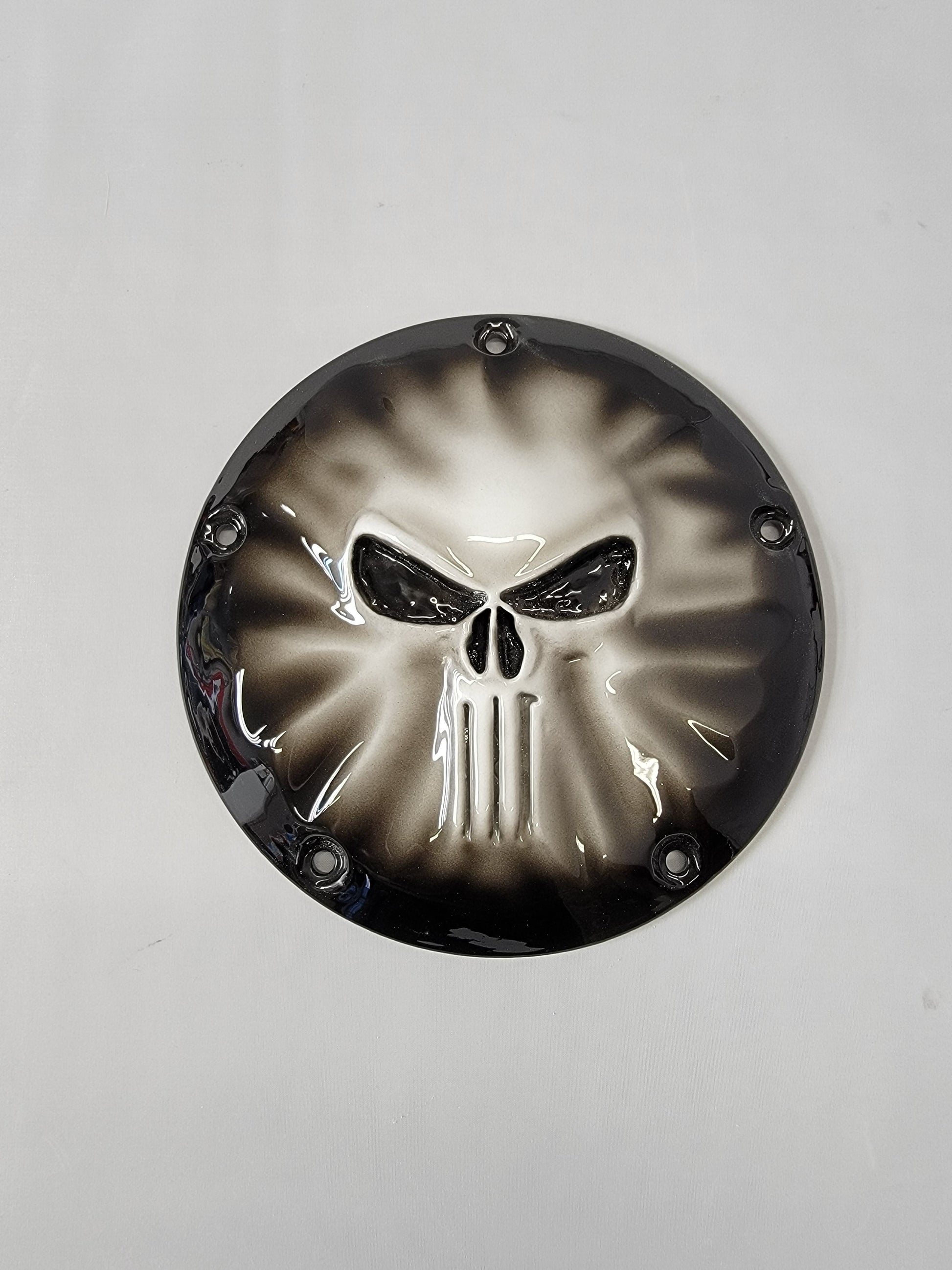 Punisher stretching through Harley derby cover