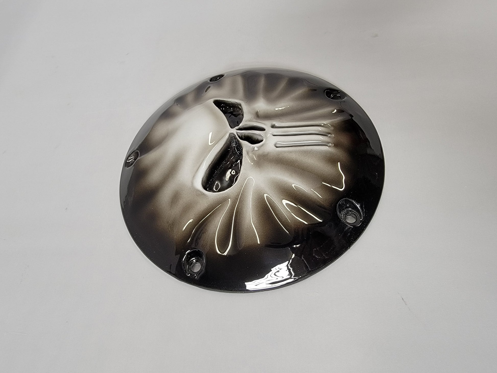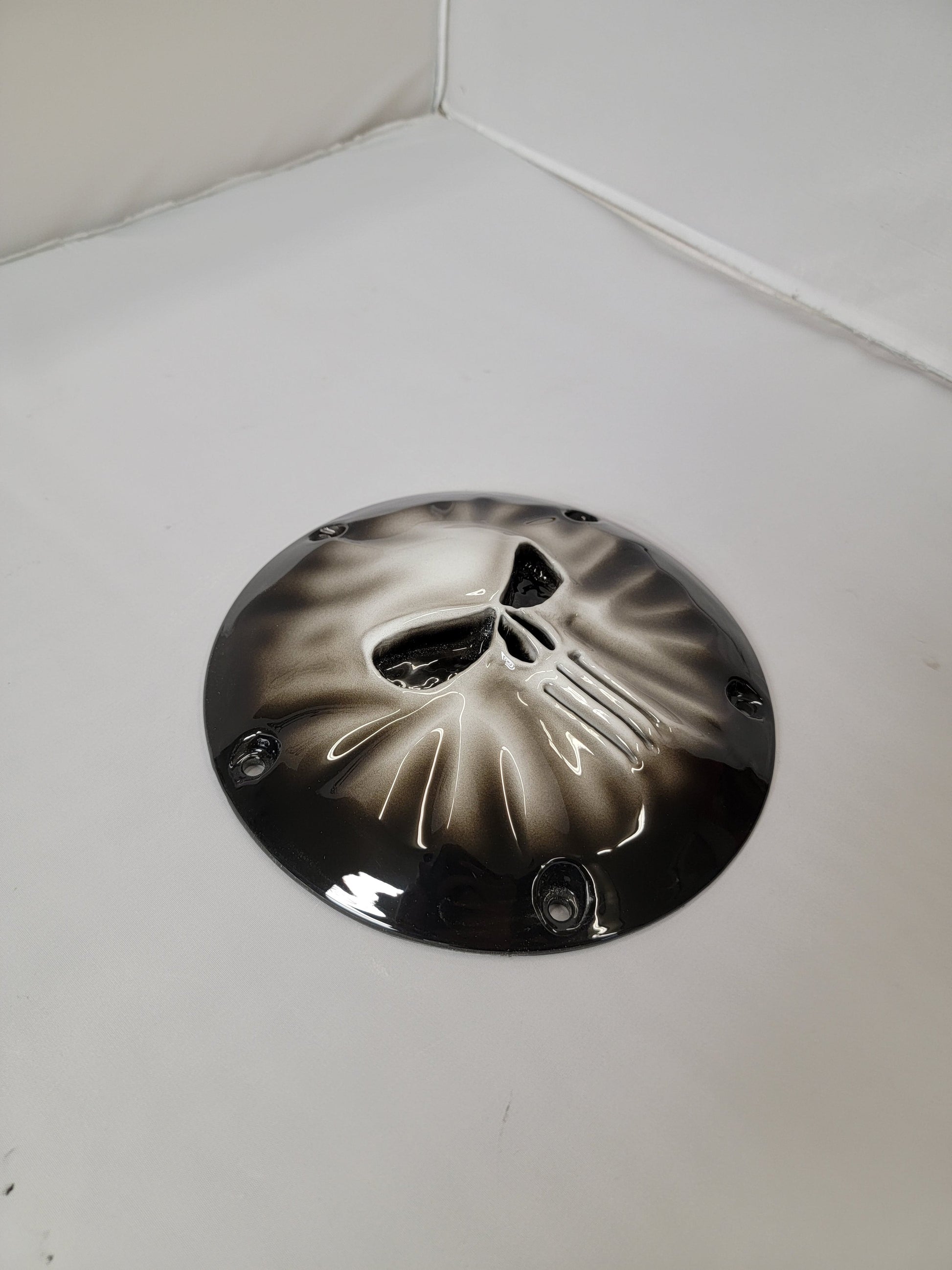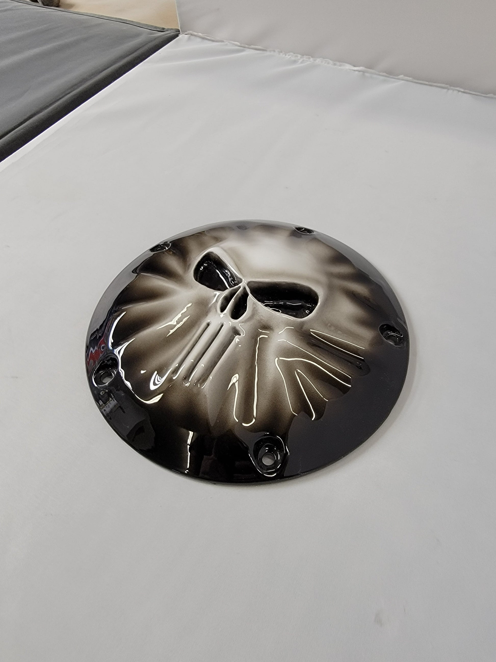 Custom built 3D punished skull pushing through Harley-Davidson derby cover. Can do anything of flag or style of bike. These take three to four weeks to build