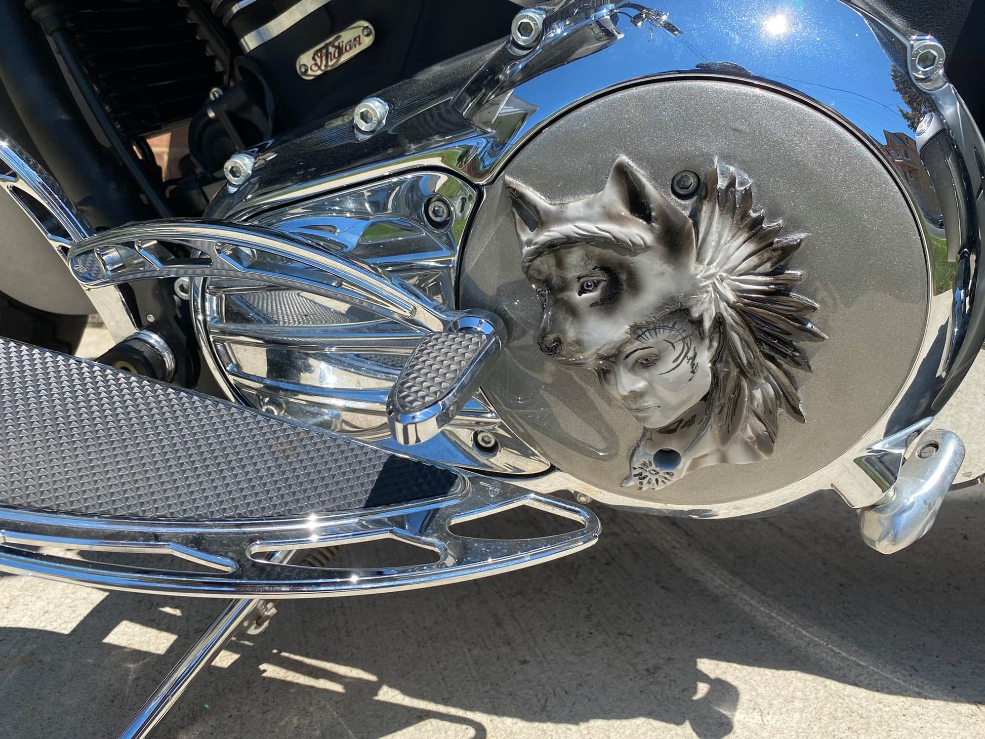 Custom built 3D wolf woman on Victory or Indian derby cover. Can do any design, color combination or style of bike. These are individually built and designed for the customer. These take about 3 to weeks to build. We will verify information after the order is placed. Contact us if you have any questions or special requests.